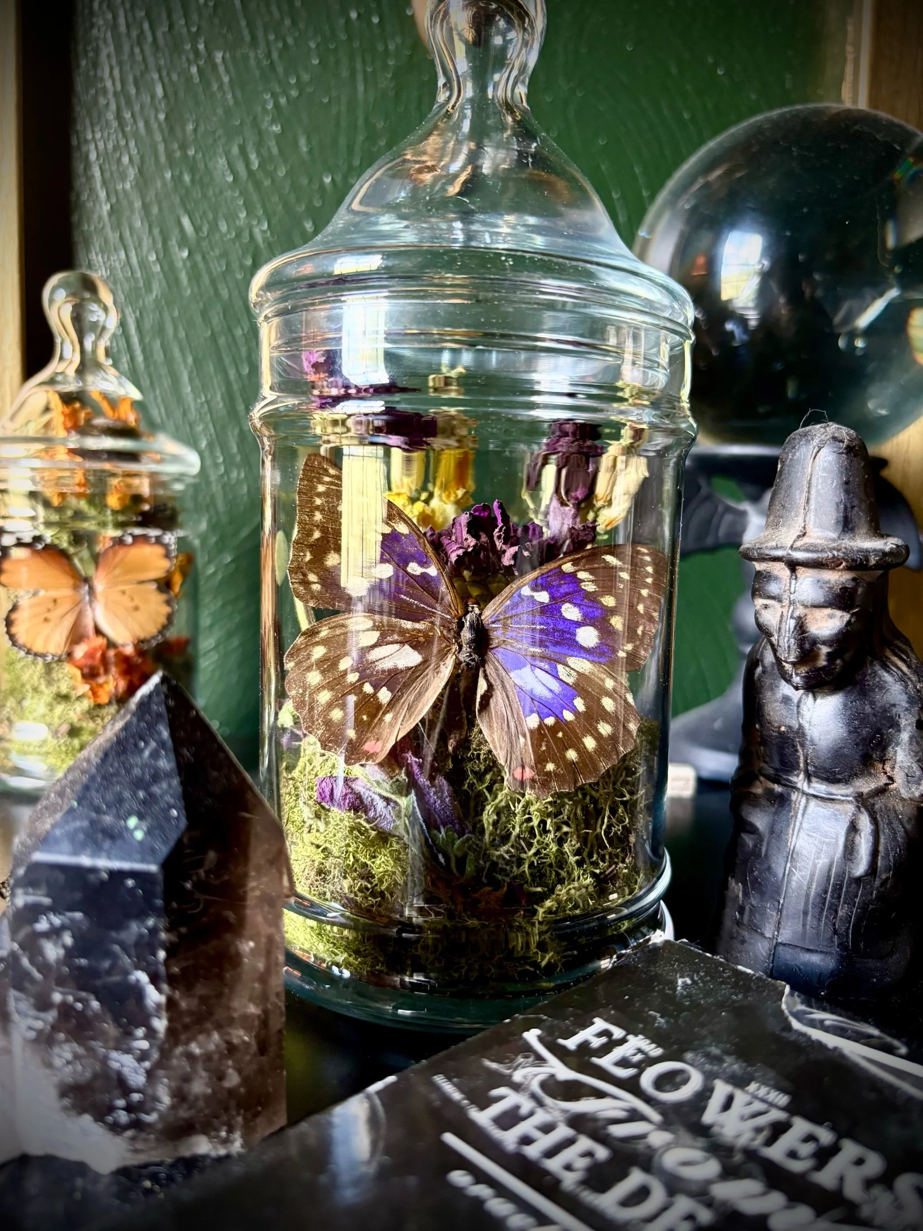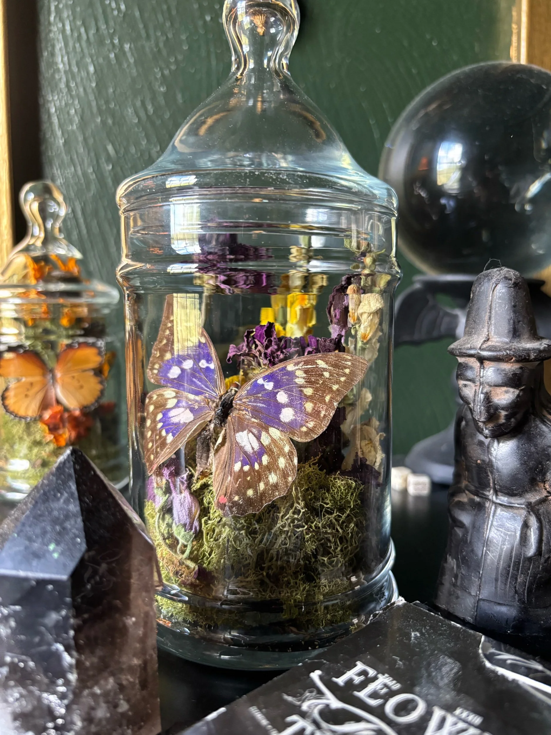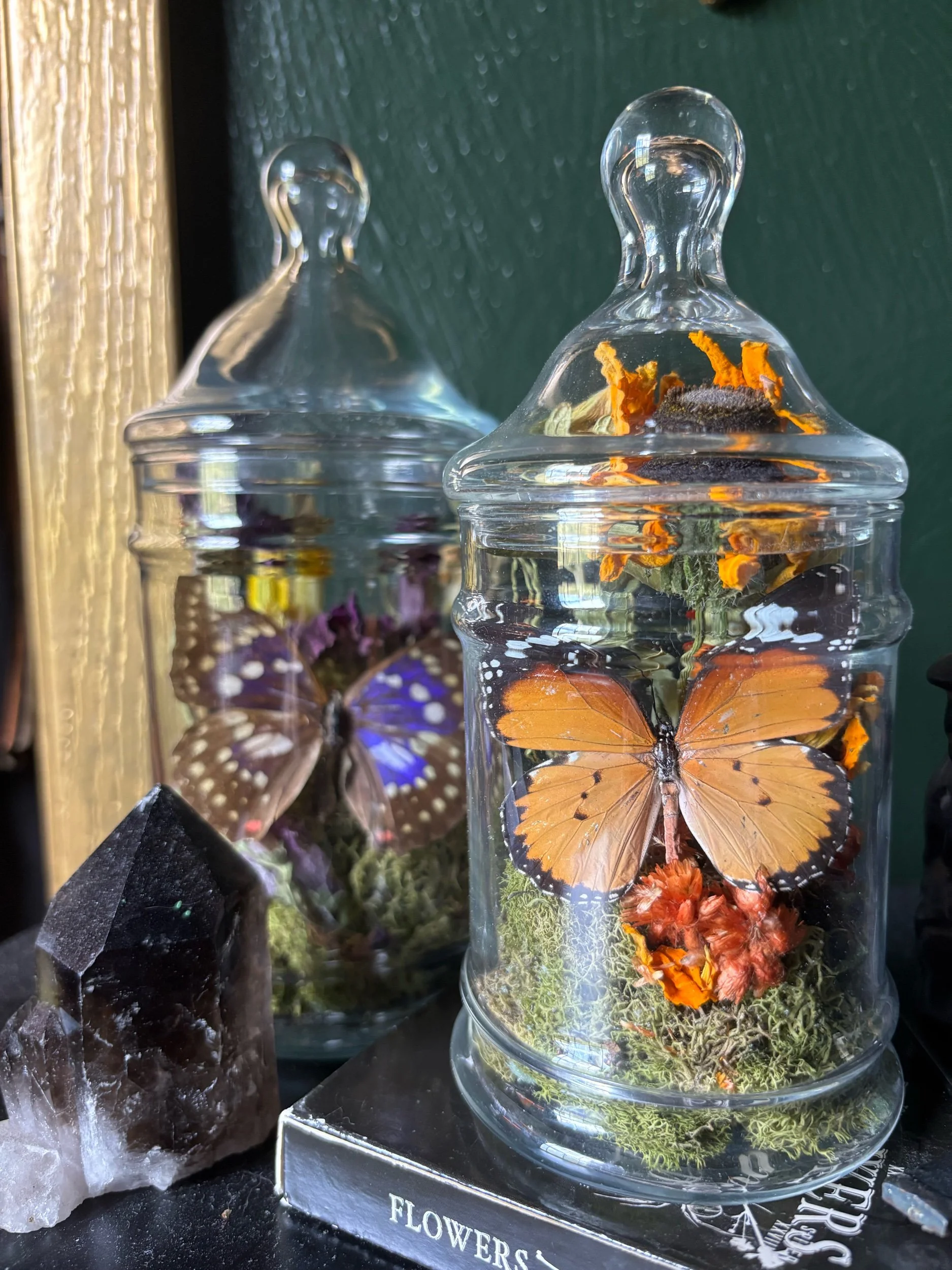 Categories: All Dried floral designs Accesories & Misc Paintings Flowers Of The Dead All | Dried floral designs | Accesories & Misc | Paintings | Flowers Of The Dead | Butterfly Cloché - Select Variant from $70.00 “Autumn winds”-Hand painted plaque $60.00 “Anxiety” Hand Painted- Butterfly Plaque $55.00 The Iris Spider $40.00 Seed and sticker box $15.00 Stickers $5.00 “I buy MYSELF flowers” Pin $9.99 “Eat crow” Pin $9.99 “The Widow” Pin $9.99