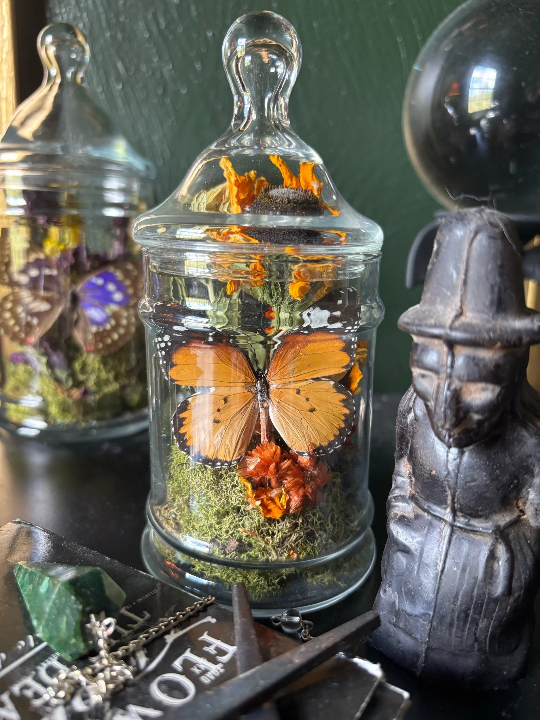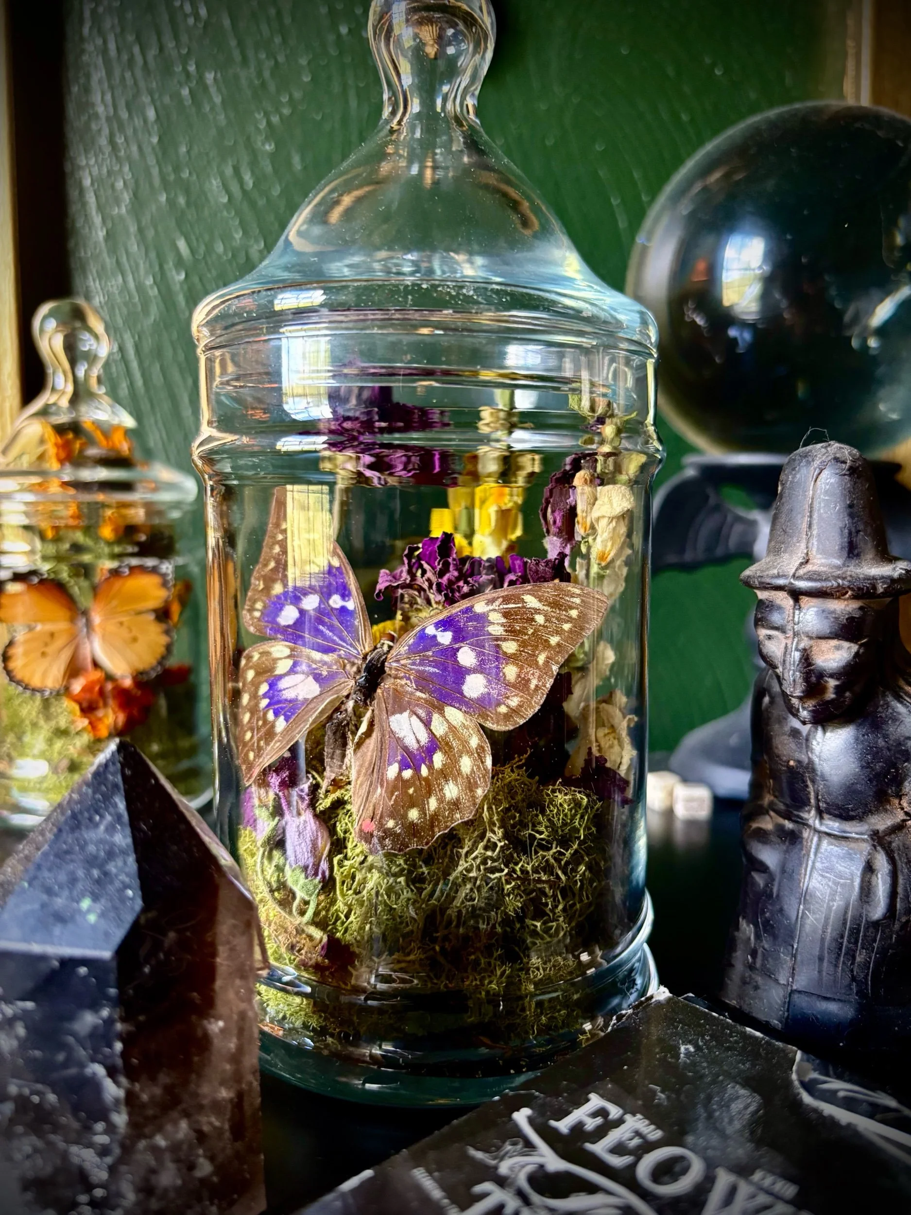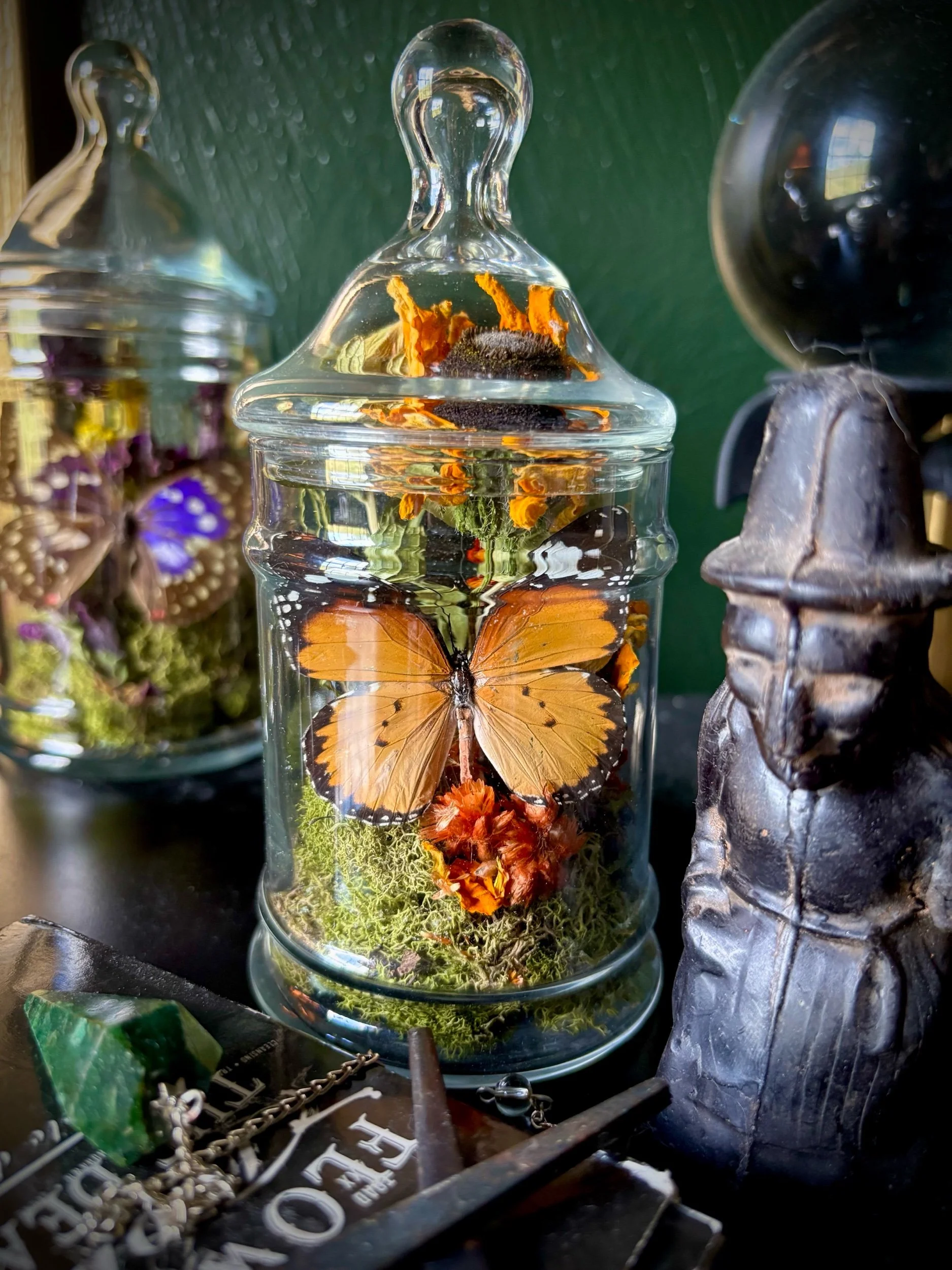 Categories: All Dried floral designs Accesories & Misc Paintings Flowers Of The Dead All | Dried floral designs | Accesories & Misc | Paintings | Flowers Of The Dead | Butterfly Cloché - Select Variant from $70.00 “Autumn winds”-Hand painted plaque $60.00 “Anxiety” Hand Painted- Butterfly Plaque $55.00 The Iris Spider $40.00 Seed and sticker box $15.00 Stickers $5.00 “I buy MYSELF flowers” Pin $9.99 “Eat crow” Pin $9.99 “The Widow” Pin $9.99